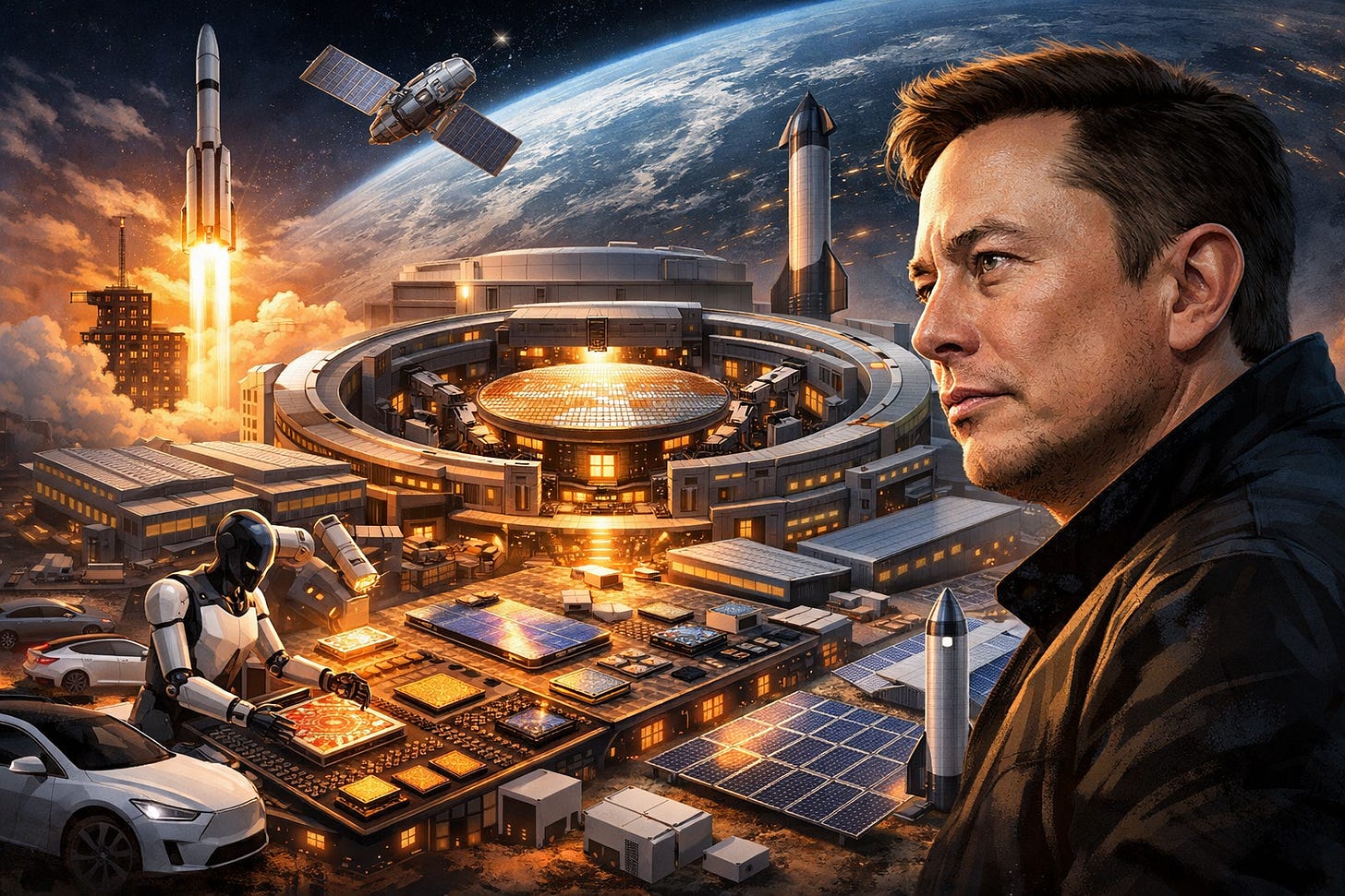 More cars → more real-world vision data → better AI → smarter robots → cheaper manufacturing → more cars and robots → more energy demand met by Tesla solar/storage → more orbital compute → faster AI iteration → repeat forever.